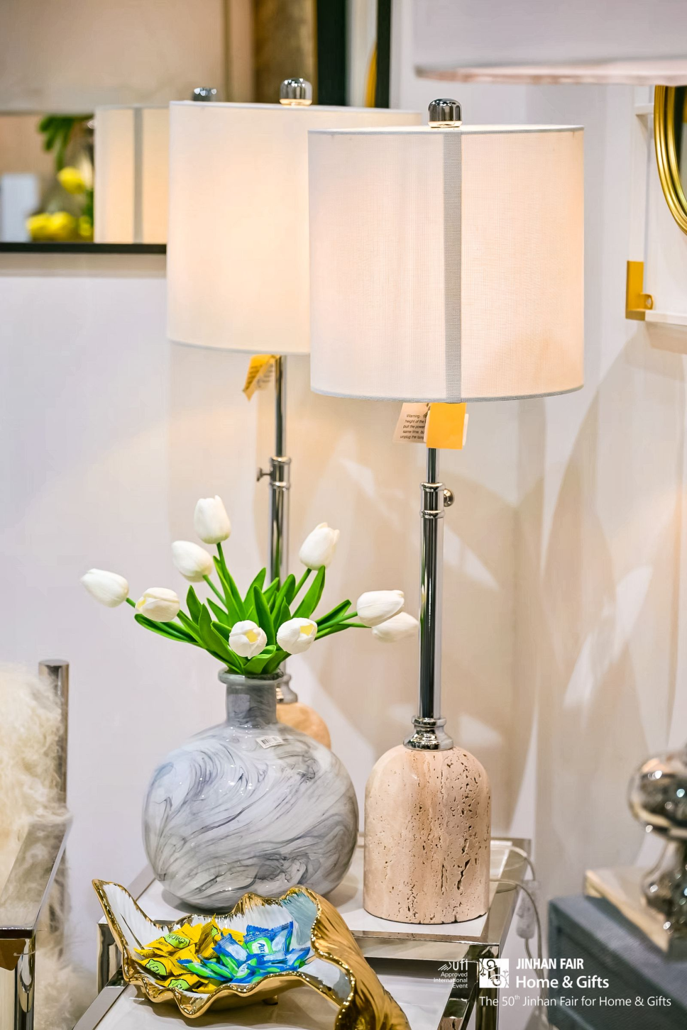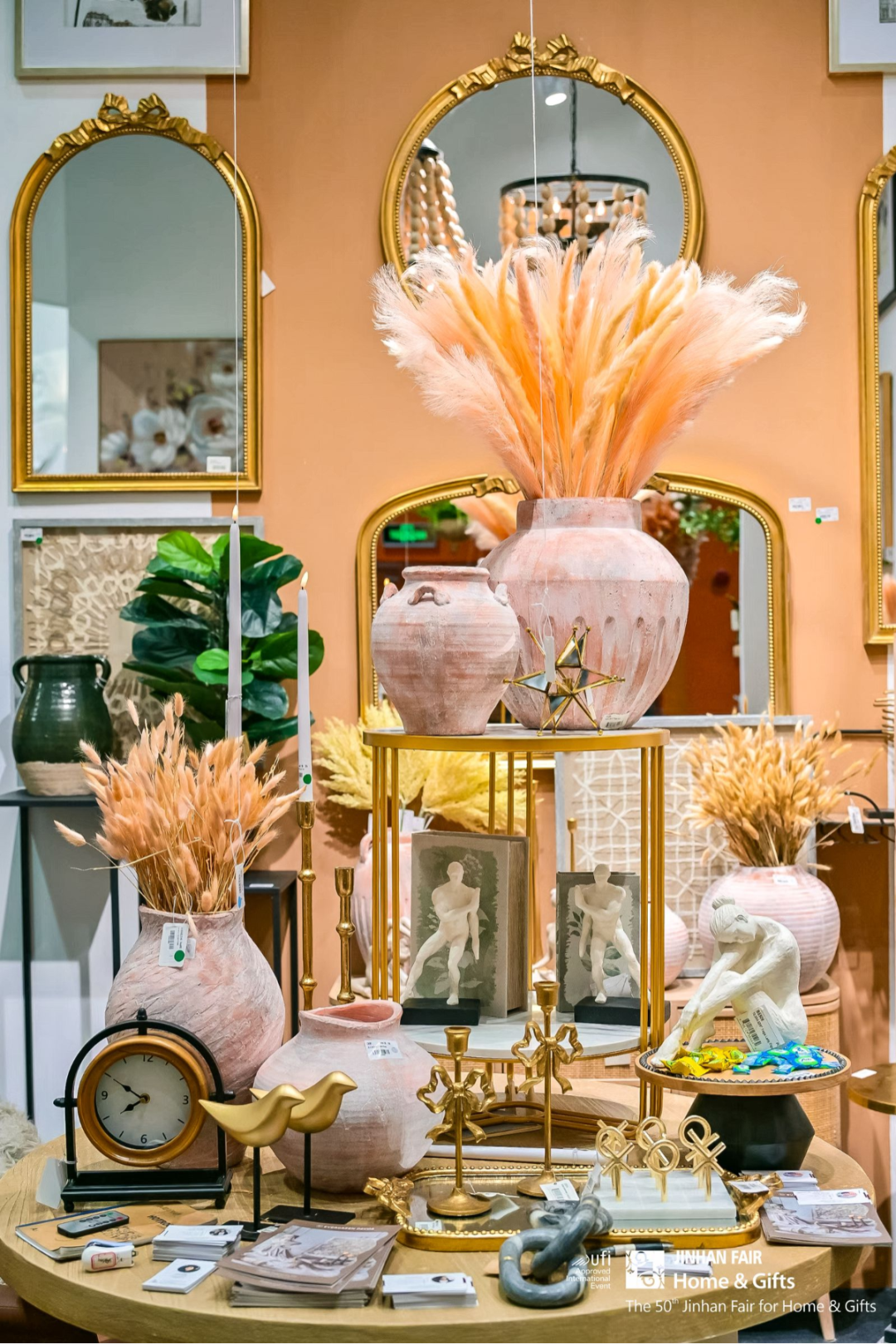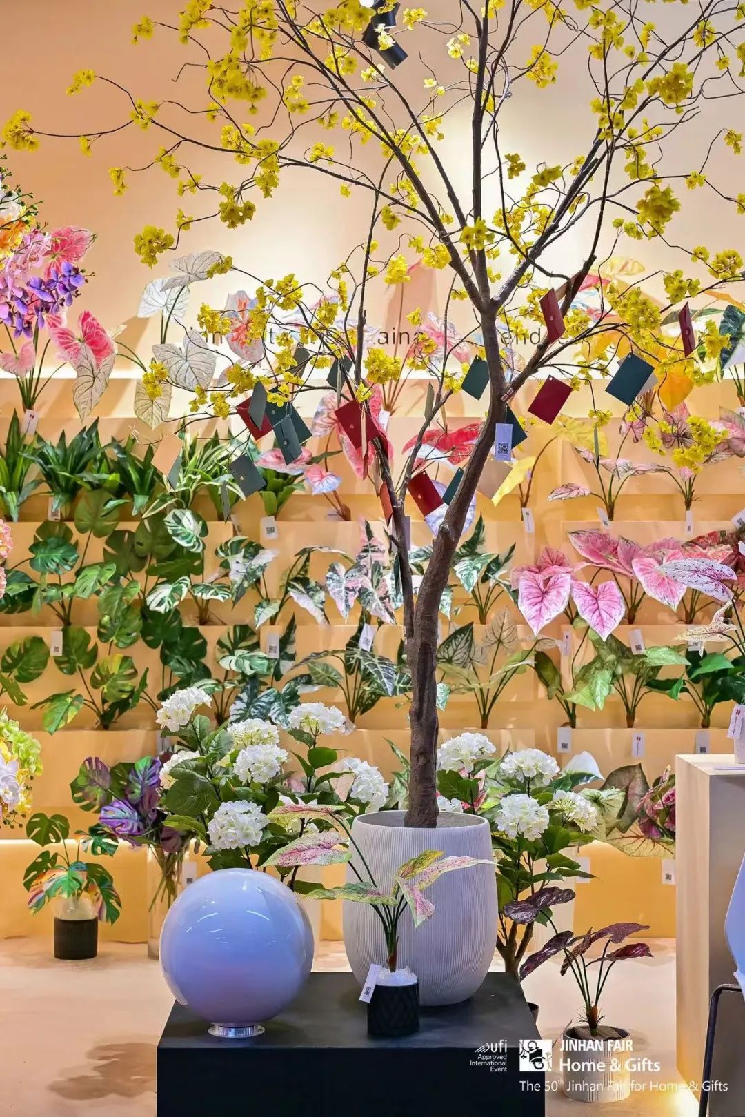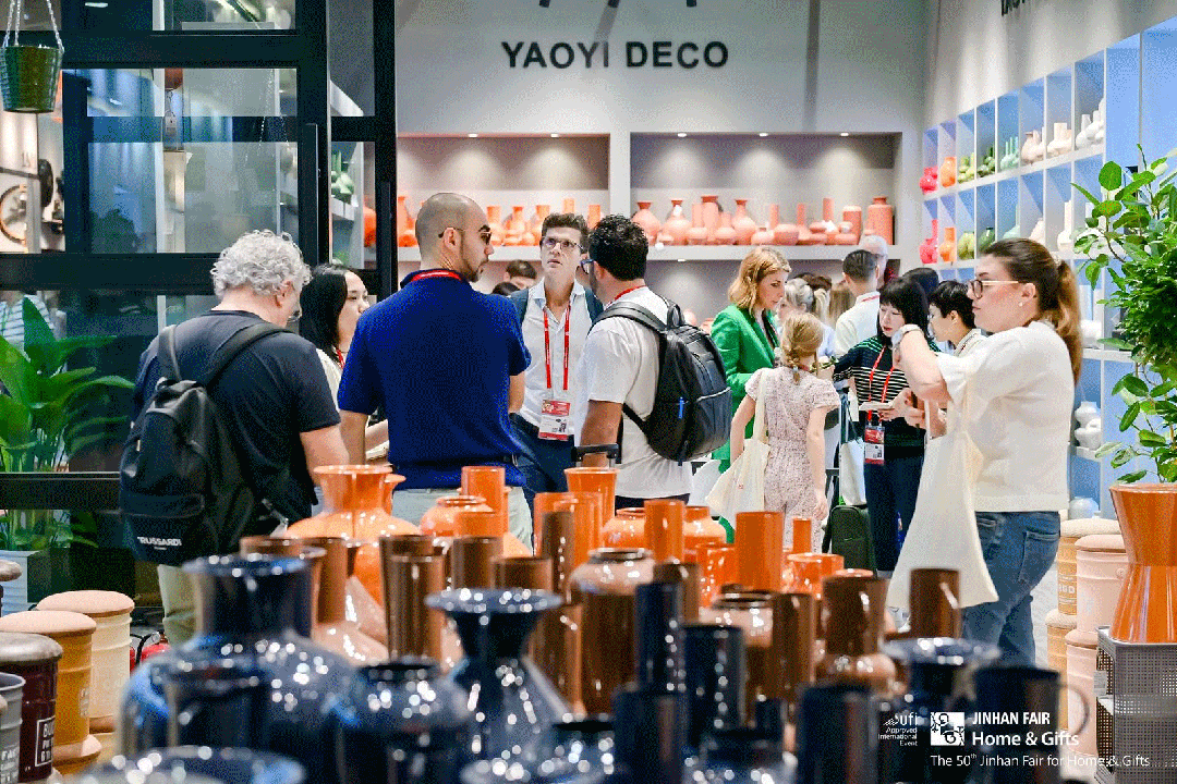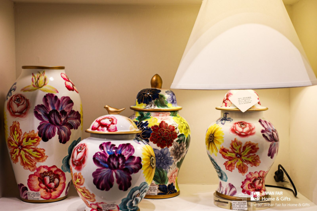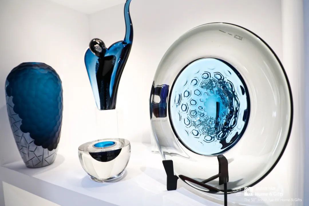 还有潮州锦明、义乌天昊格雷、安溪聚宏鑫、盐城新吉成等新秀力量首度闪耀登场。首次参展的潮州锦明总经理陆楚雄提到,本次带来了绿色环保、可持续发展的陶瓷花瓶及花盆。义乌天昊格雷总经理李世忠表示,本次参展带来的玻璃手工艺术品均由艺术老师纯手工制作,每件产品独一无二。
