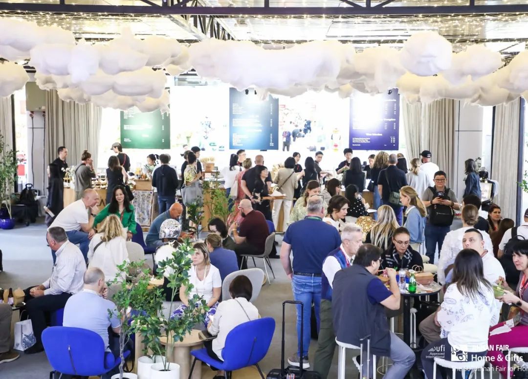 现场活动丰富多彩,除了提供免费穿梭巴士、全天候自助餐和咖啡吧等贴心服务外,还新增了舞狮表演、传统英歌舞、舞蹈快闪及晚间乐队演出,吸引了众多买家参与。