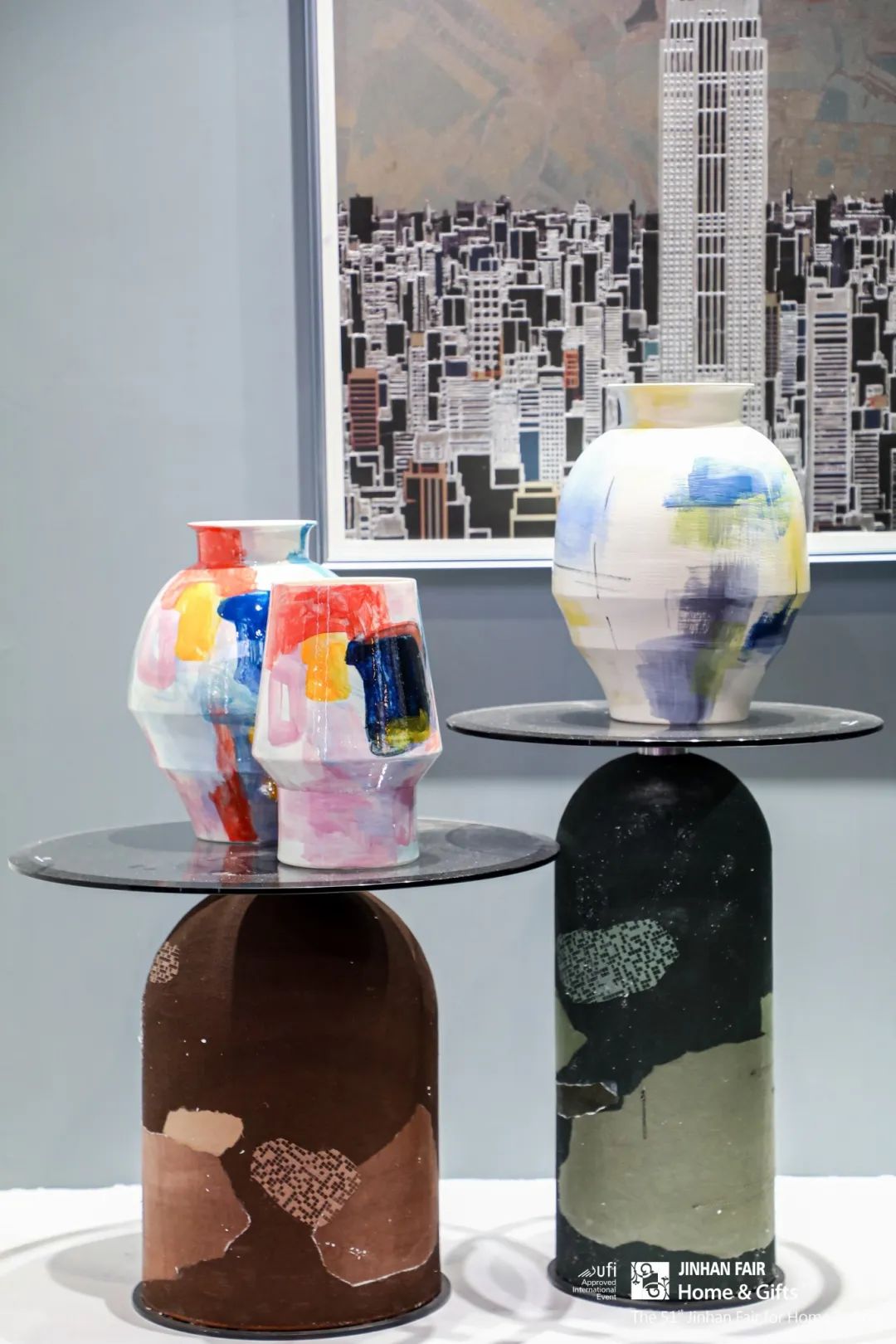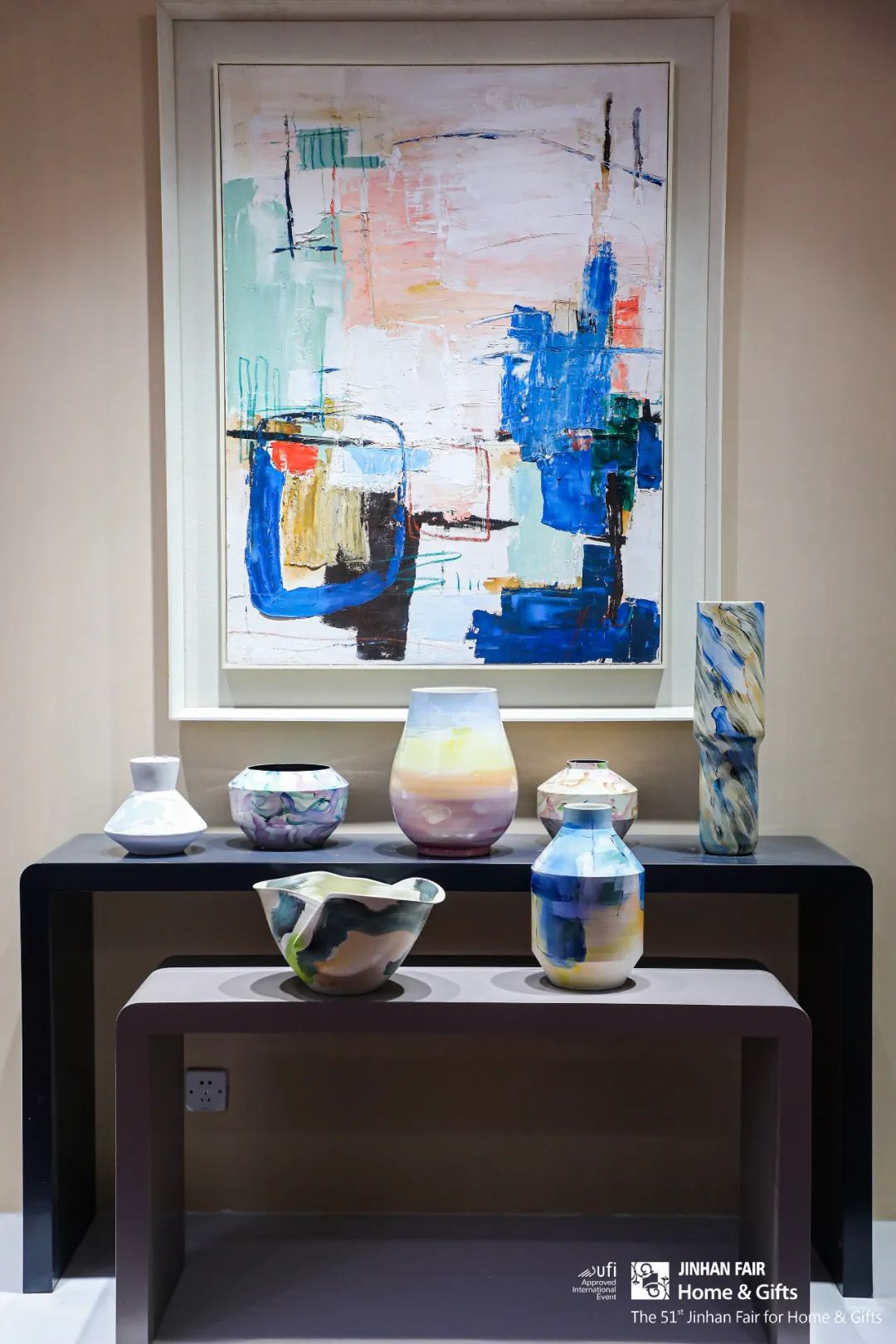 画之都也在不断突破,通过材料创新与工艺升级,实现了从单品到整体家居方案的战略转型,销售副总龚伟莉介绍称,“我们的产品矩阵已从单幅装饰画,延伸至陶瓷容器、艺术柜体等家居品类,并搭建了灵活高效的定制体系,快速响应不同市场的个性化需求。”