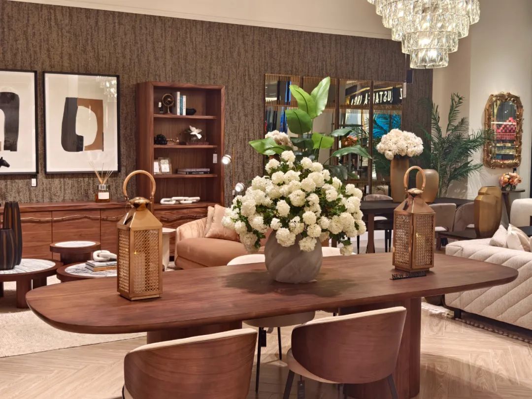 在实地走访中,考察团还前往dubai mall内多家中高端家居品牌门店,包括marina home、pottery barn、bloomingdale's home、christofle、aura、versace home、the armani/casa等,感受中东市场在设计语言、材质选择与风格品位上的最新趋势。期间,企业代表还与部分品牌进行了交流洽谈,探讨合作可能,为日后产品落地与渠道拓展打下基础。
